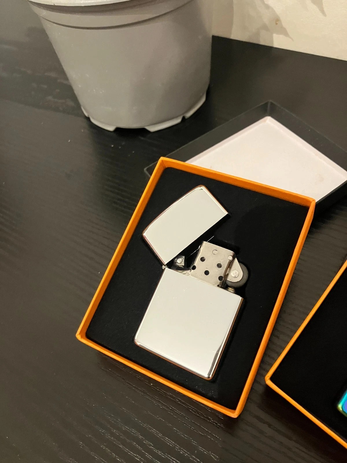 This lighter is a sleek and stylish Zippo pocket lighter made of metal, featuring a silver and rainbow/Black & Gold petrol design. Made in Spain, it comes with a presentation box, making it a perfect gift for any smoker or collector. The Zippo brand ensures high quality and craftsmanship, making this lighter a must-have for those who appreciate fine tobacciana and smoking supplies.
